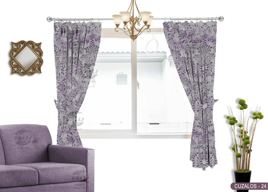 Pack of 2 Curtains - Abstract Design Cream & Violet Window