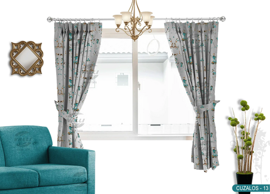 Leaf Design Curtain - Grey