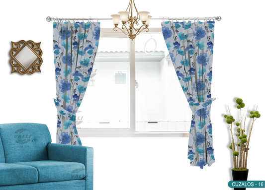 Flower Design Curtain - Blue