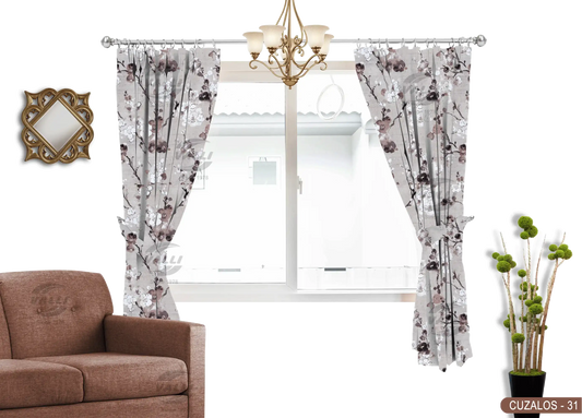 Flower Design Curtain - Brown