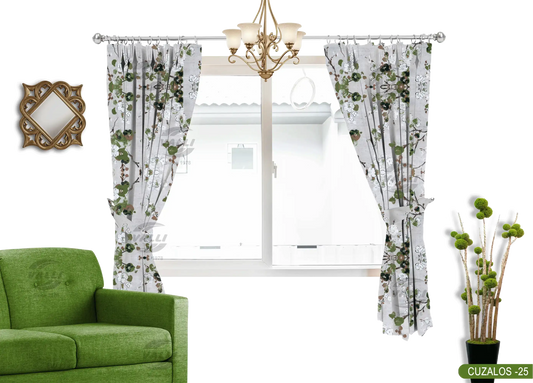 Flower Design Curtain - Green
