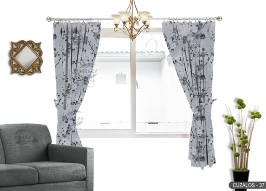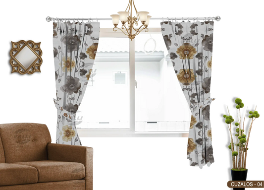 Flower Design Curtain - Grey