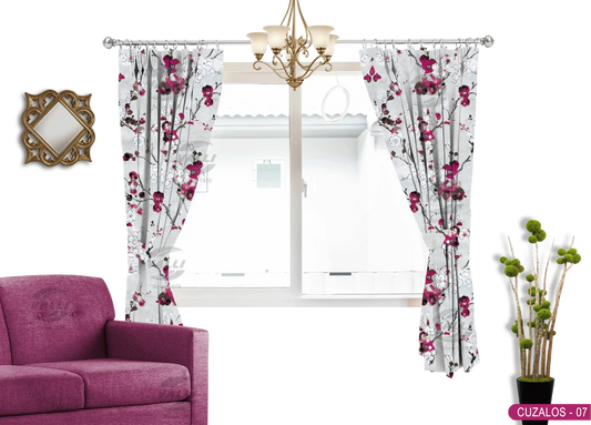 Flower Design Curtain - Wine