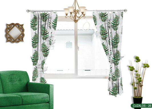 Leaf Design Curtain - Green