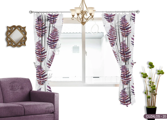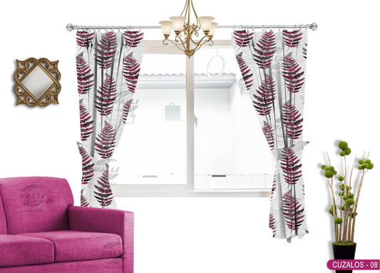 Leaf Design Curtain - Wine