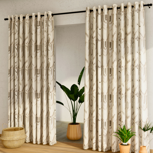 Pack of 2 Curtains - Geometric & Abstract Design Cream