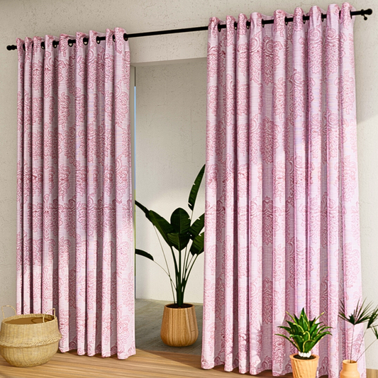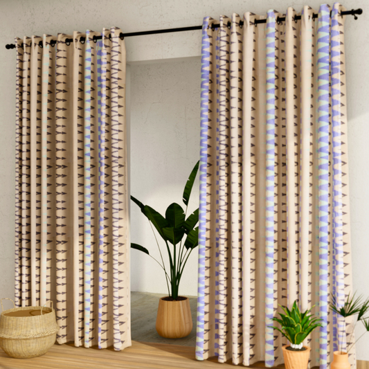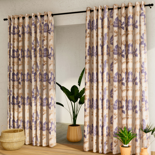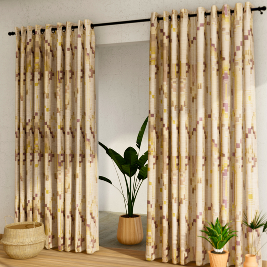 Pack of 2 Curtains - Abstract Design Cream & Violet Window