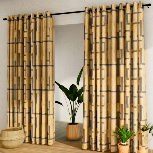 Pack of 2 Curtains - Abstract Design Cream & Brown