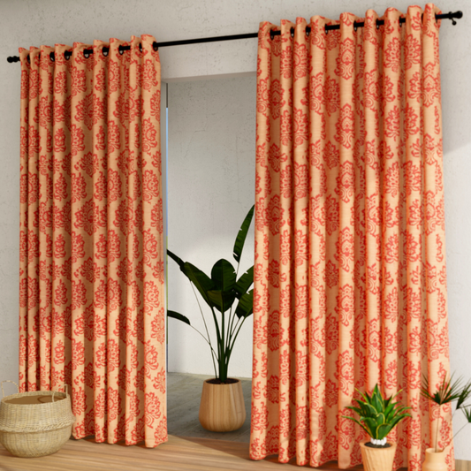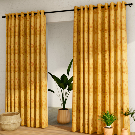 Pack of 2 Curtains - All Over Design Cream & Gold