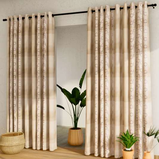 Pack of 2 Curtains - Geometric Circle Design Biege