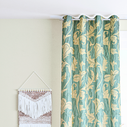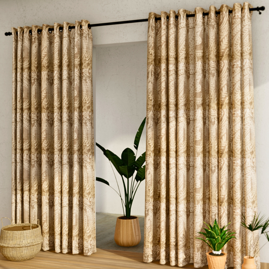 Pack of 2 Curtains - Botanical Design Cream & Gold
